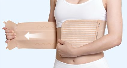 Two-section hook-and-loop design allows precise adjustment and secure fixation for customized rib support.